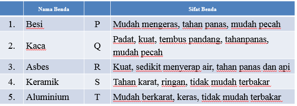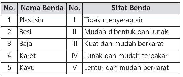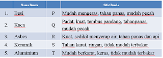 Pasangan yang tepat antara benda dan sifatnya ditunjukkan oleh ….