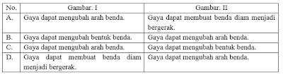Pasangan yang tepat antara gambar gaya dan pengaruh gaya terhadap benda adalah . . . .