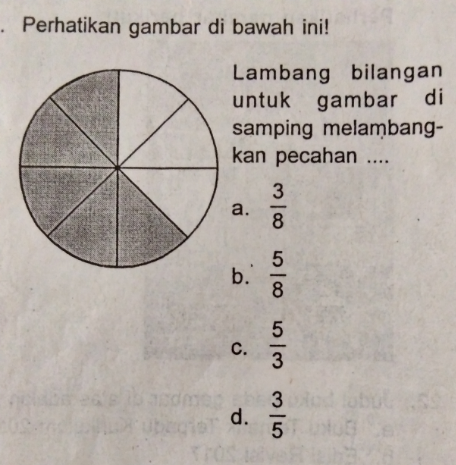 10. 3/5 Lambang pecahan di samping kedudukan angka 3 sebagai ….