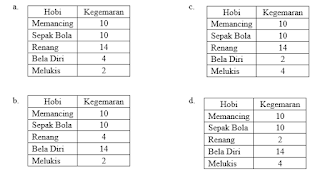 Tabel yang benar dalam menyajikan data di atas adalah ……