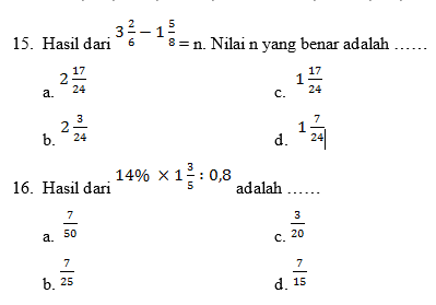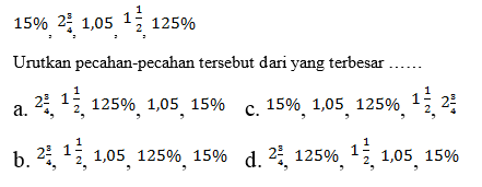 18. Bentuk persen dari 3/15 adalah ……
